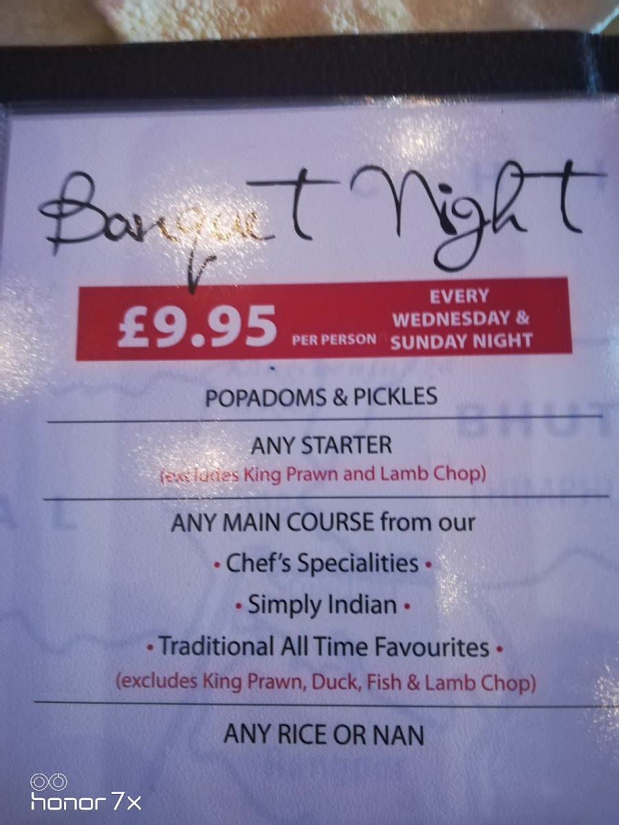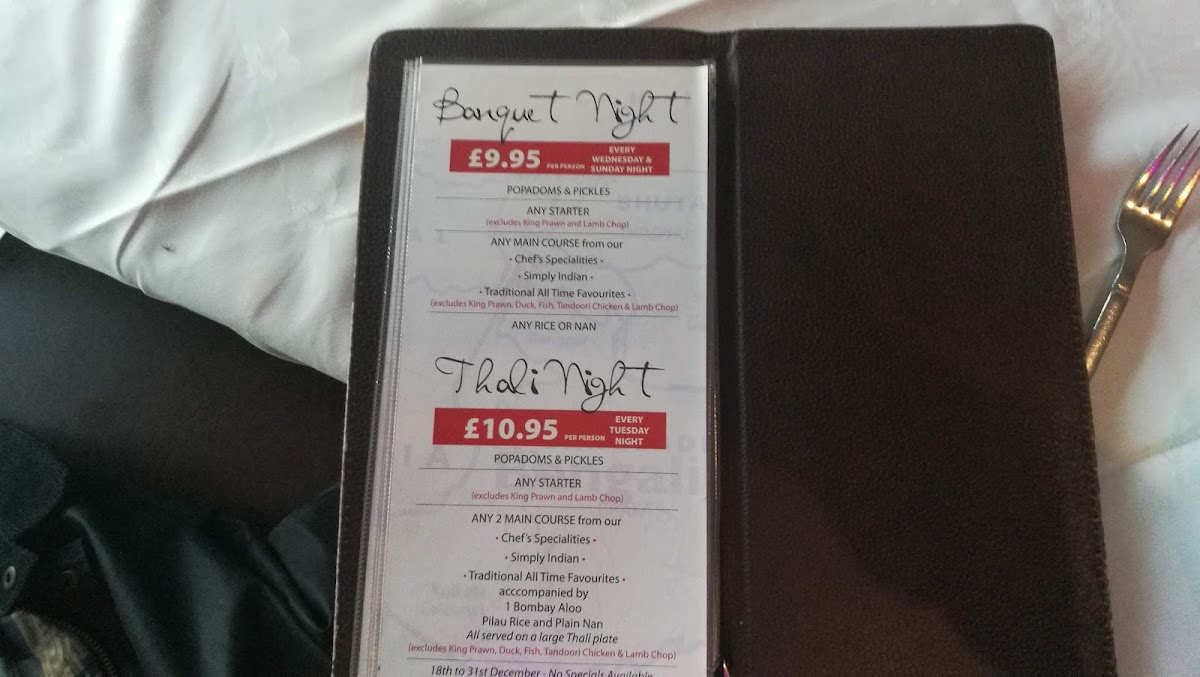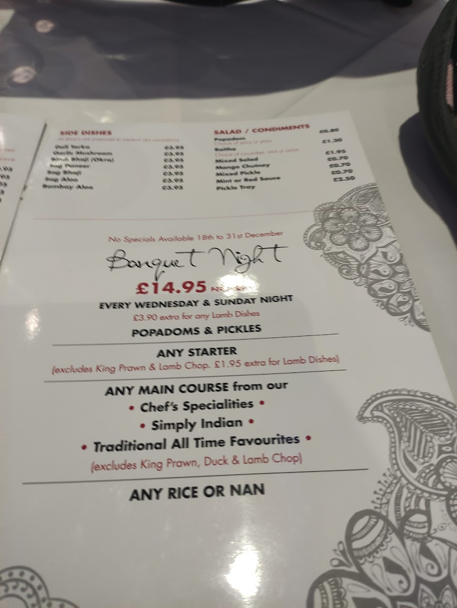 Simply Indian dishes like Tikka Masala (£8.95) and Tandoori Butter Chicken (£9.95) are comforting choices for those familiar with classic Indian flavors, while the Balti Special section offers unique creations such as the Chicken Balti (£8.95) and King Prawn Balti (£12.95).